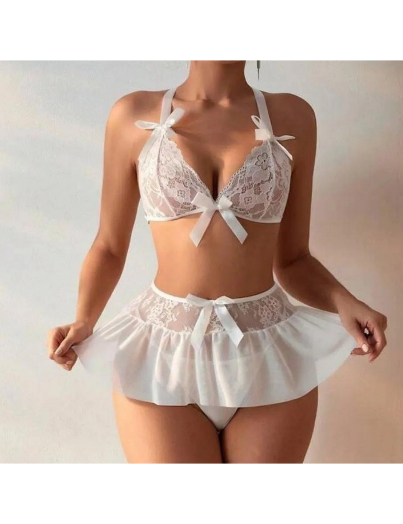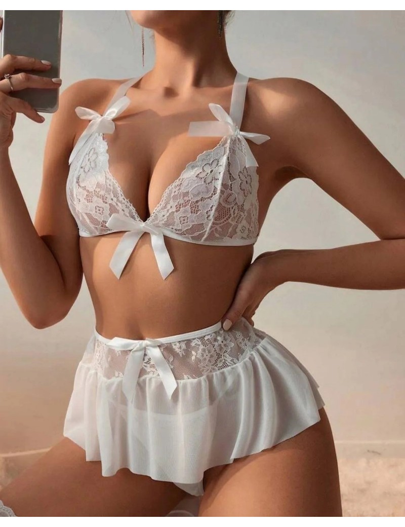 Tegan Fantazi Beyaz Dantelli Fiyonklu Seksi Babydol TG279239